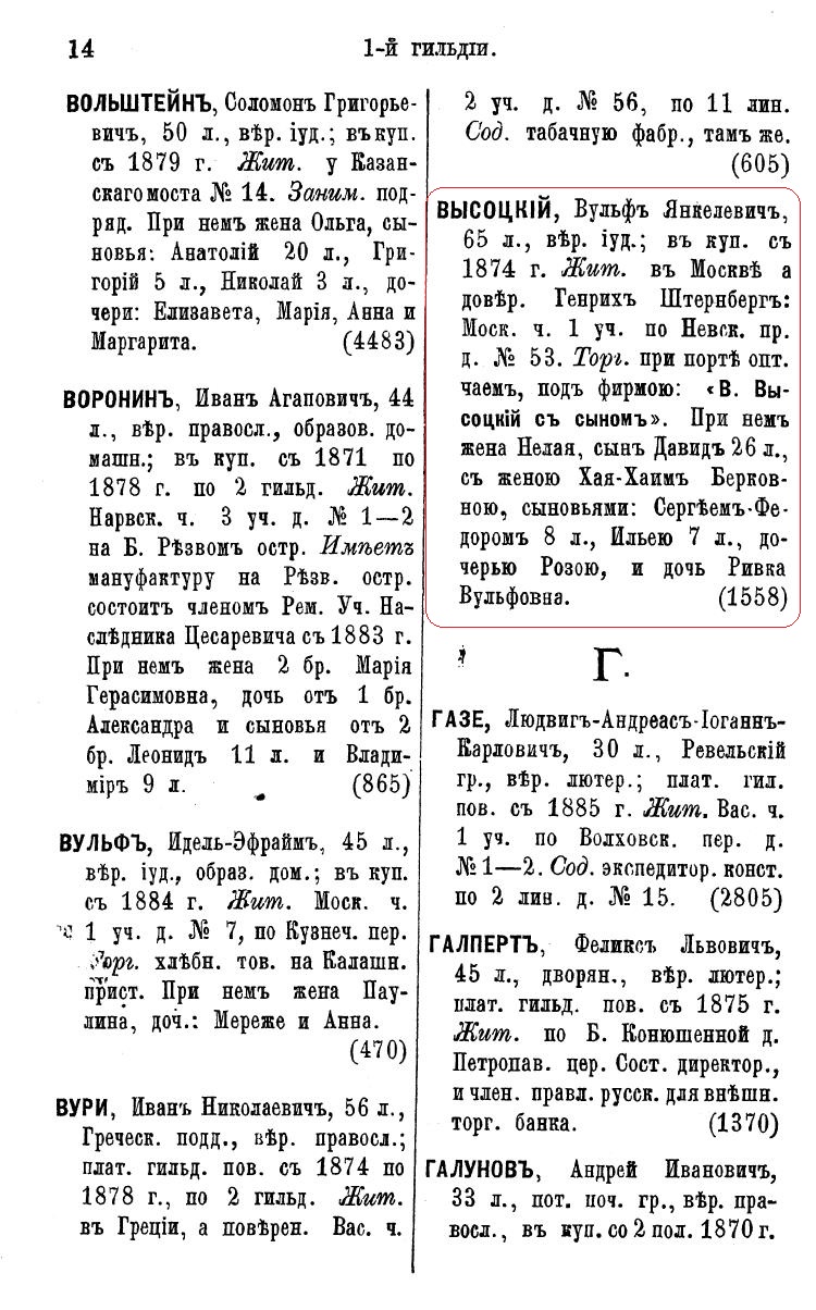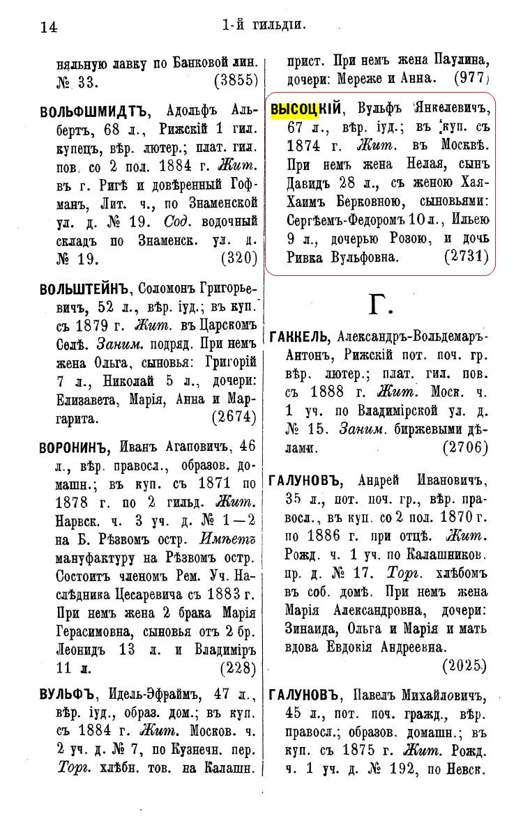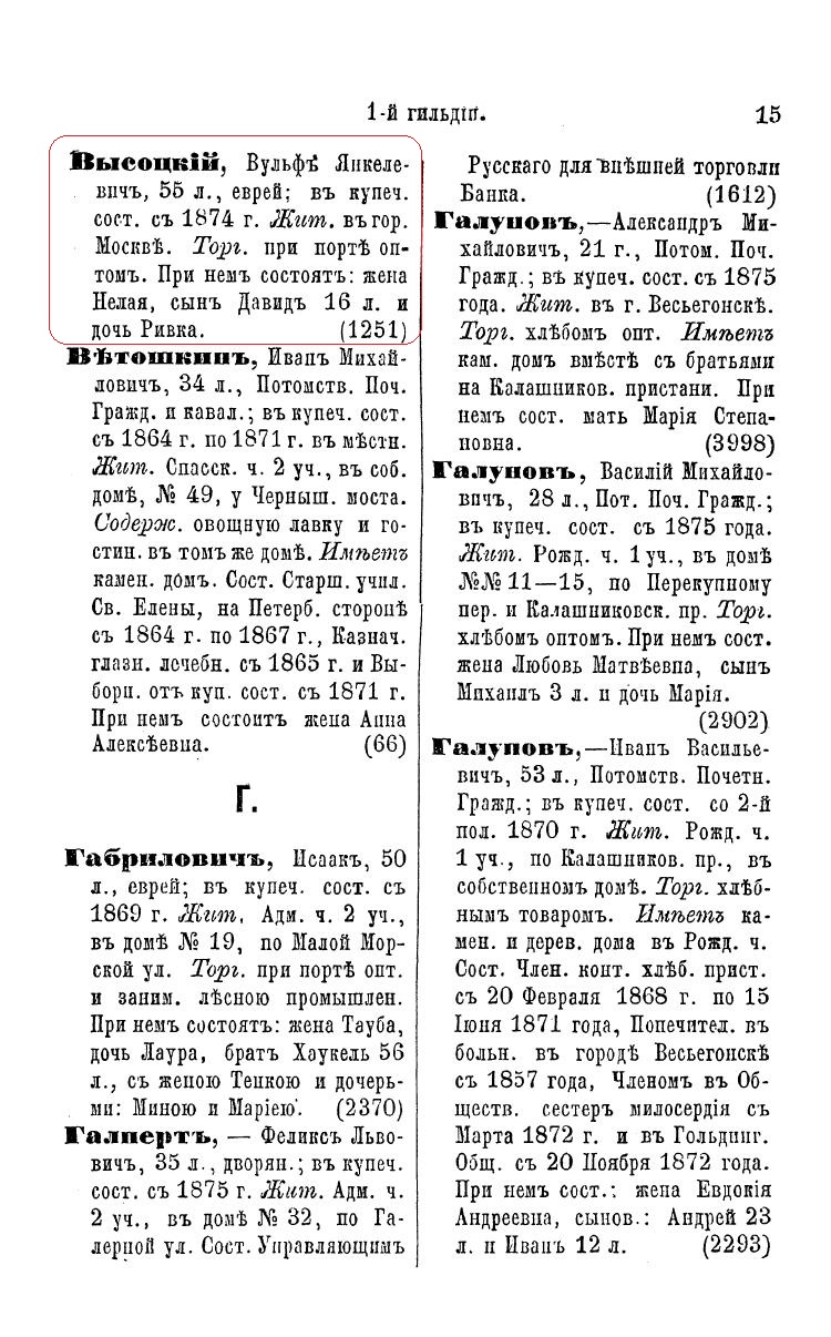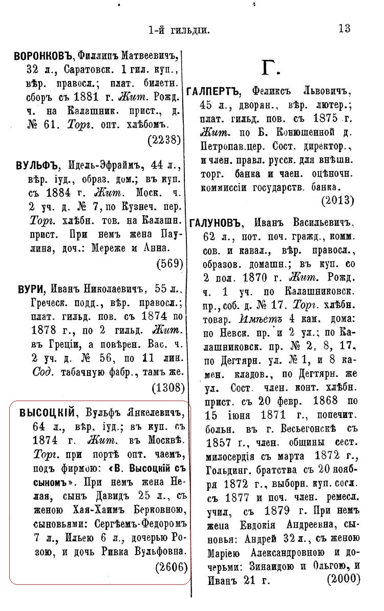 Источник: Справочная книга о лицах, получивших на 1875 год купеческие и промысловые свидетельства по г. Москве
