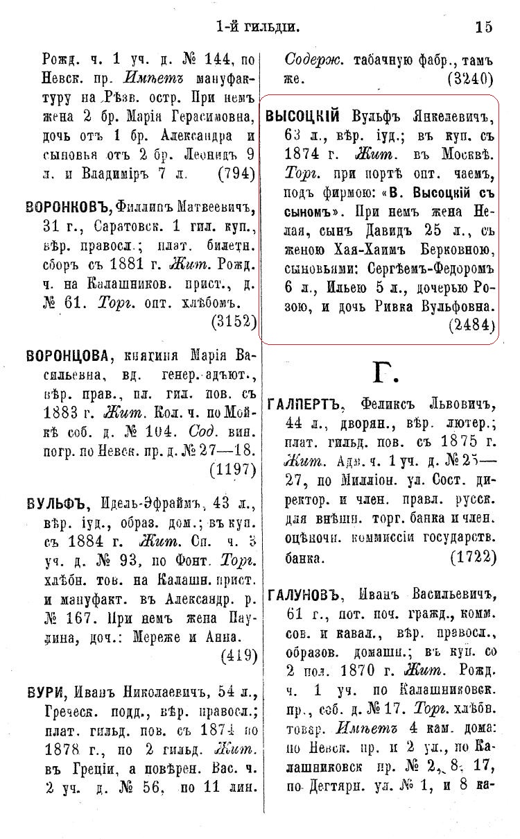 Источник: Справочная книга о лицах Петроградского купечества и других званий, акционерных и паевых обществах и торговых домах, получивших на 1874 год сословные свидетельства по 1-й и 2-й гильдиям...