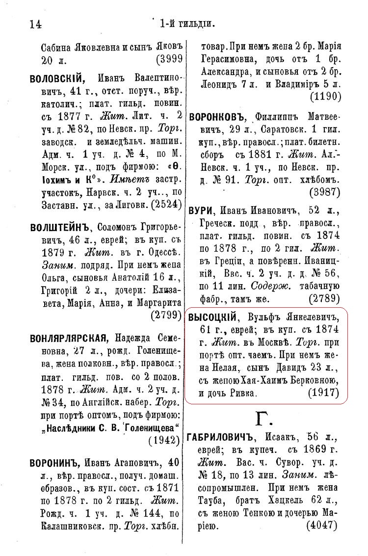 Источник: Справочная книга о лицах, получивших на 1878 год купеческие и промысловые свидетельства по г. Москве