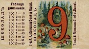 Шоколадные обертки: Шоколад зоологический. Зоология рыб. Шоколад для детей. Испано-американская война. Шоколад Карикатурный. Ваниль. Почта. Велосипедный шоколад. Русские былины. Птицы певчие. Охотничий шоколад. Спорт. Выставка в Чикаго. Детский шоколад. Выставка в Париже в 1900 г. Народный шоколад. Детские забавы. Оперный.